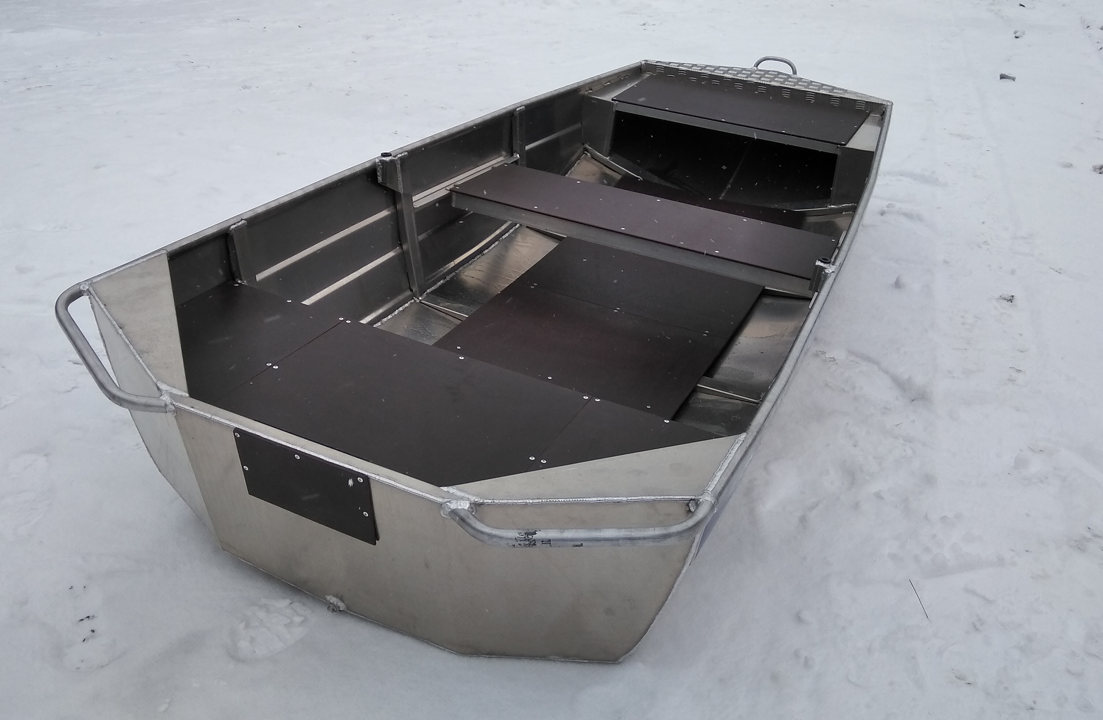 Лодка моторно-гребная в отличие от гребной имеет специальный транец для крепления мотора. Транец цельносварной лодки является частью корпуса. Вместимость - до двух человек.
